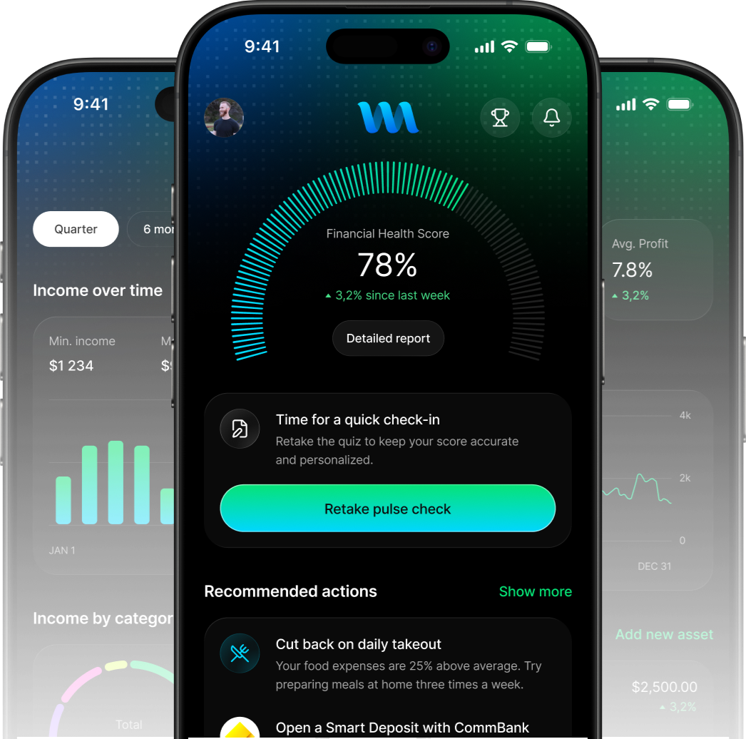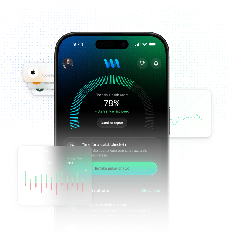 Get a research-backed snapshot of your financial & overall wellbeing & track how it improves over time with a clear, visual score history.